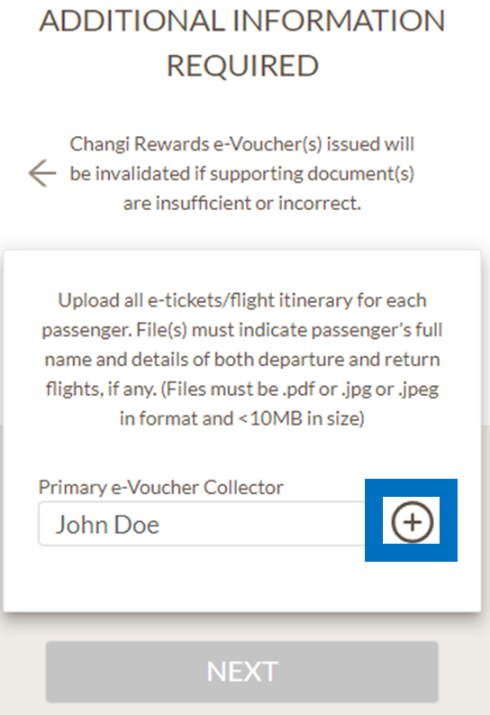 다음으로 넘어가면, 유효하지 않은 증빙을 첨부할 경우 바우처 발행이 거절된다는 경고문구가 나옵니다. 'Proceed'를 클릭해서 넘어간 뒤, '+' 버튼을 눌러 항공권 증빙을 업로드합니다. 항공사에서 비행기를 예약할 때 받았던 e-티켓을 업로드해주면 됩니다. 가족 대표로 작성하는 경우에는 가족 모두의 이티켓을 한꺼번에 업로드합니다.